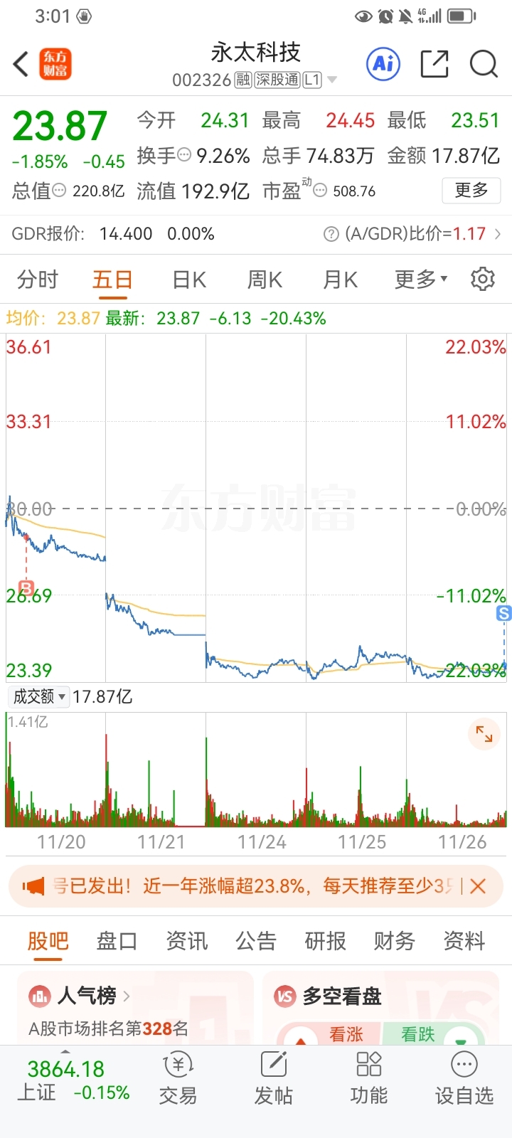 $永太科技(SZ002326)$ 受不了了,割肉了。祝留下的大哥明天后天2个涨停