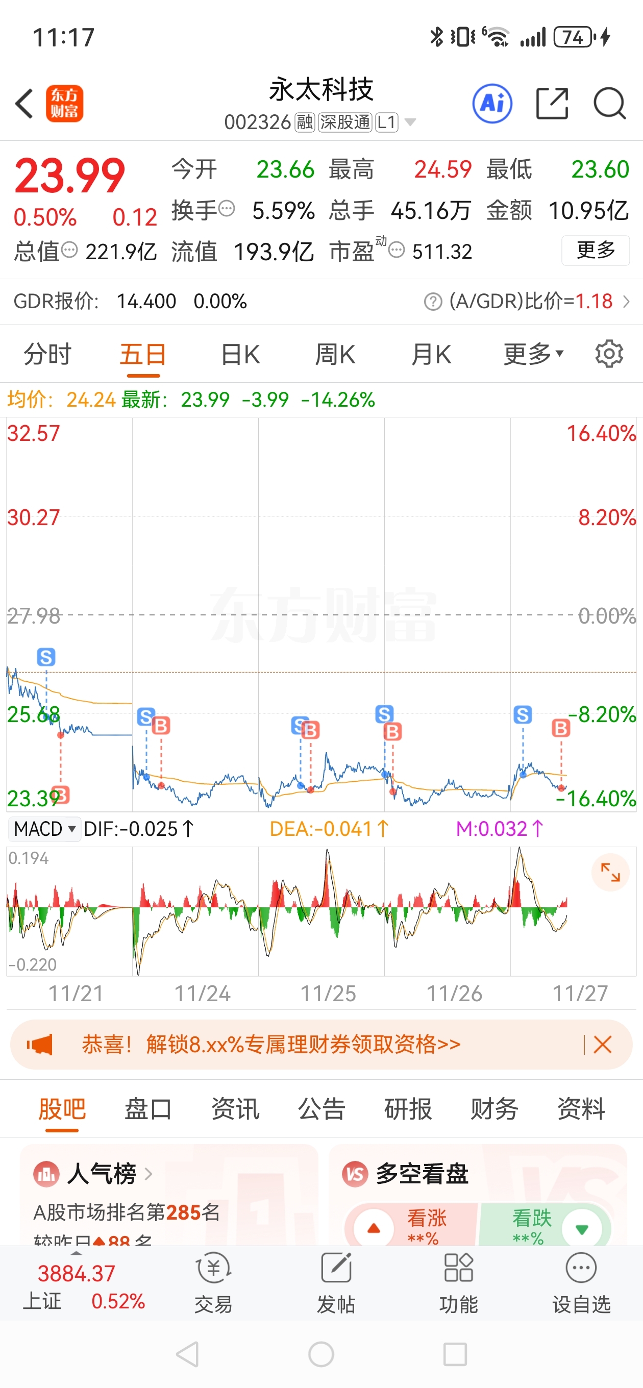 $永太科技(SZ002326)$ 总共T了三块了,唯有自救!