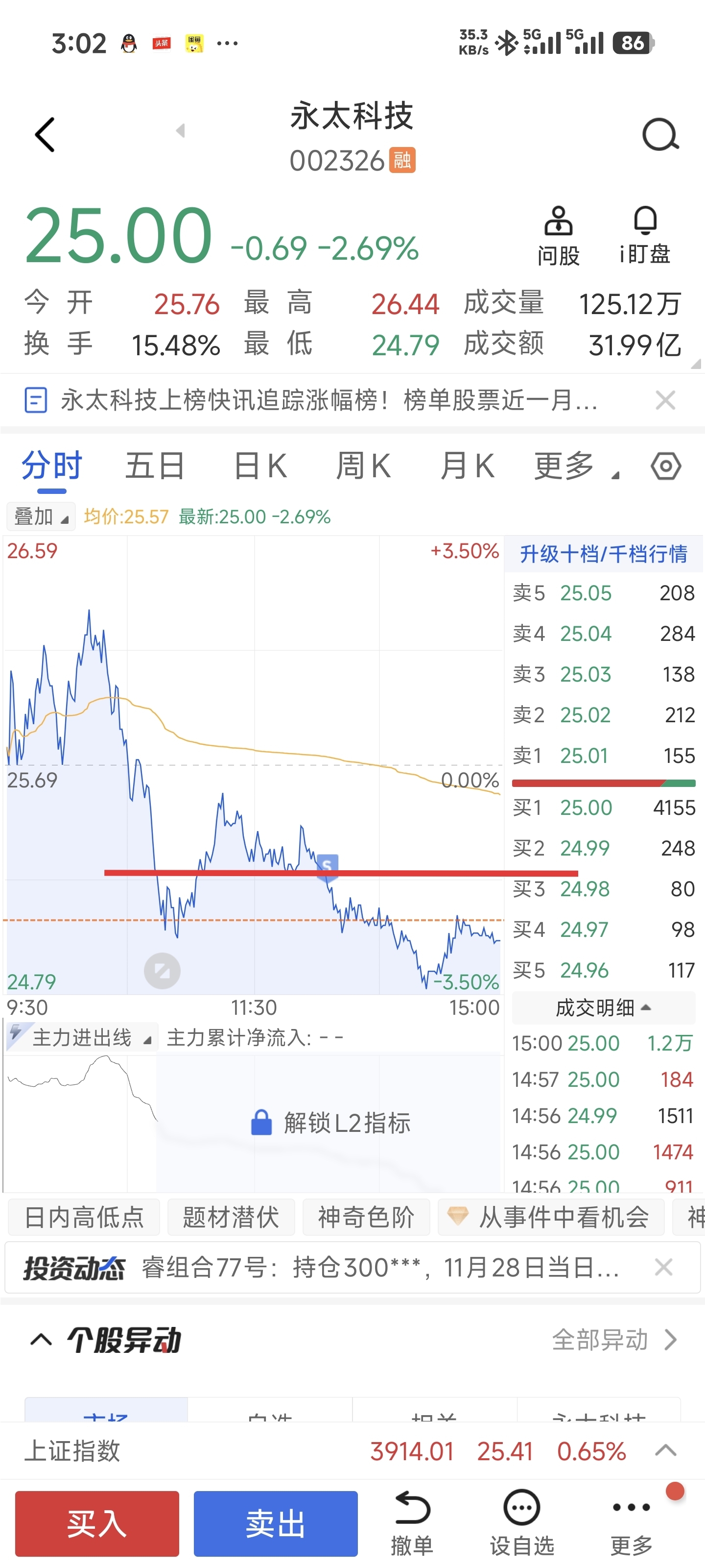 心理价位大概就是这条线,早盘放了大量但是不断震荡,而且比三傻弱很多就已经有些奇怪了,但还能用洗盘来解释,后续25有承接也还算正常,但是下午继续走弱并且三傻也全部拉稀了,那就不对劲了,并且也快到我的成本线,那就只能离场了。
