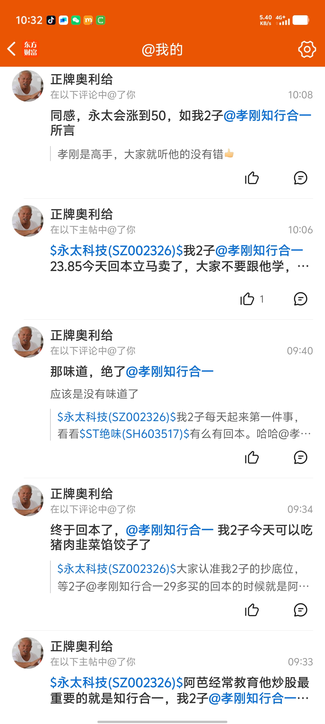 天天蹭孝刚的流量@正牌奥利给 2子就是2子。一边唱反调,一边还是很相信芭比,跟着我后面买,5000多个个股,唯独看空永太,还跟着芭比后面买
