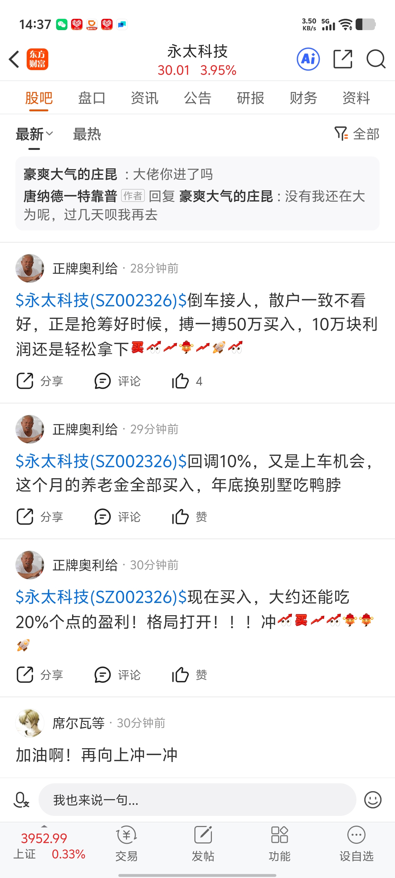 $永太科技(SZ002326)$ 30接盘我的2子@正牌奥利给 ,放心我是不会让你解套出去的,嘴巴再老,也改变不了你亏损的账户