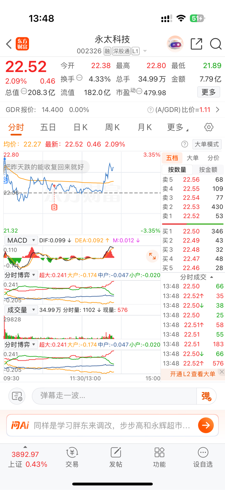 $永太科技(SZ002326)$ 买完一支股票之后,就不要去想太多,像我2子@孝刚知行合一 一样去猜股价,什么月底50明年100,太搞笑了,事实上没有任何人能预测股价,股市最大的确定性就是它的不确定性,一切预测价格的人都很蠢,你要做的就是专注做t,操作降本,跟时间做朋友