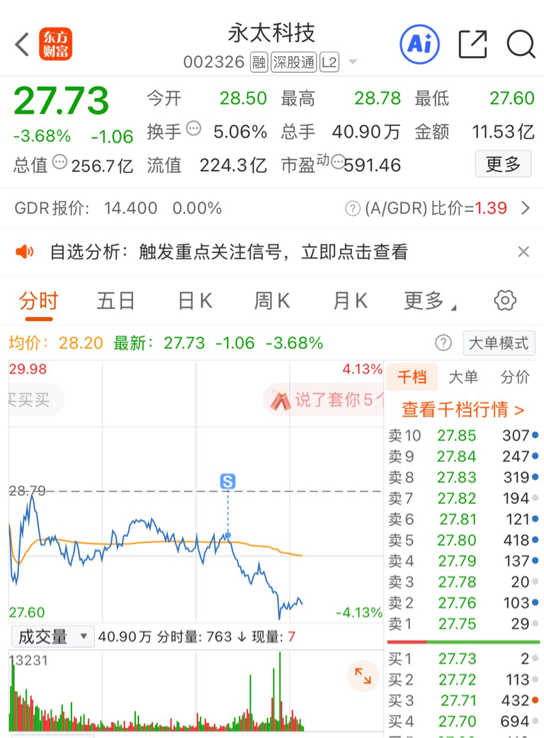 $永太科技(SZ002326)$ 死叉了,我先走,等回调几天再回来干它