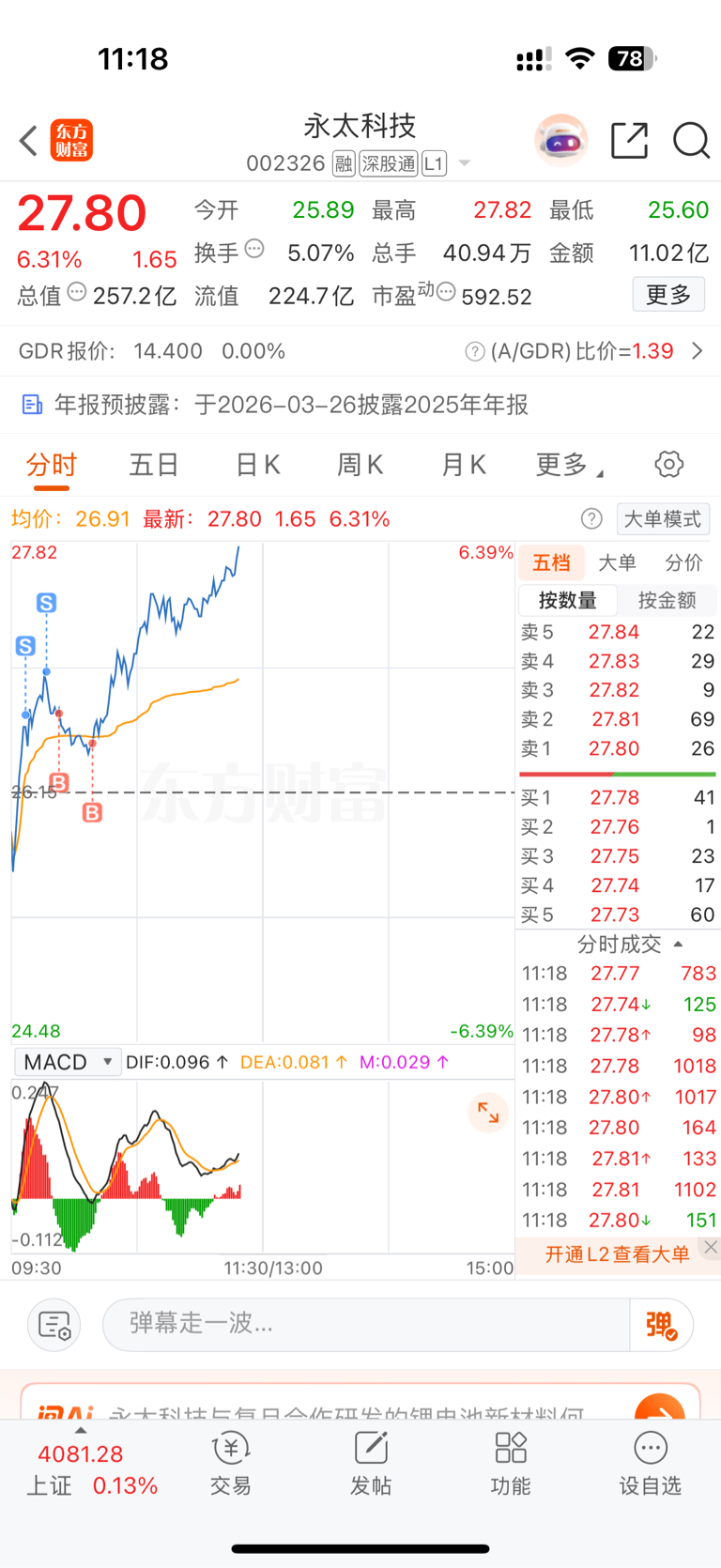 $永太科技(SZ002326)$ 冲冲冲