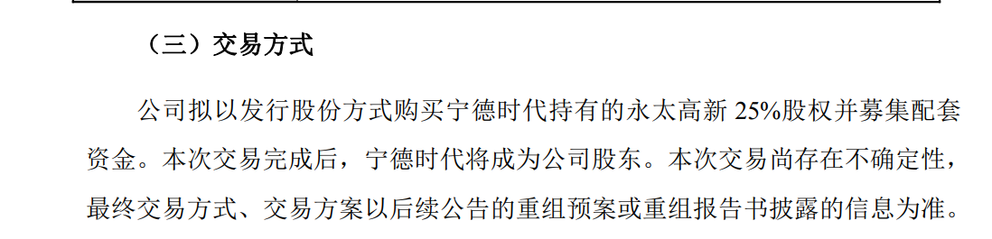 这把永太科技玩了把大的,停盘公告,其中一句发行股份购买资产并募集配套资金,本次交易完成后,宁德时代将成为公司股东,之前我预计的是只针对购买的资金,宁德会成为第三大股东,这次的公告还有募集配套资金,那就大了,宁德有可能控股成为第一股东了,变相要约收购了