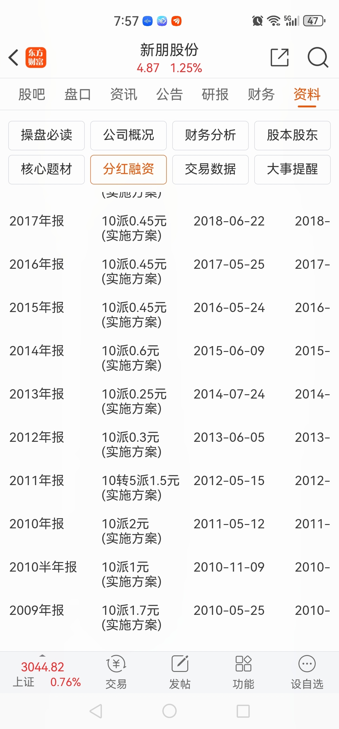 09年至今每年坚持现金分红,累计每股分红1.502元每股累计送股1.2股,