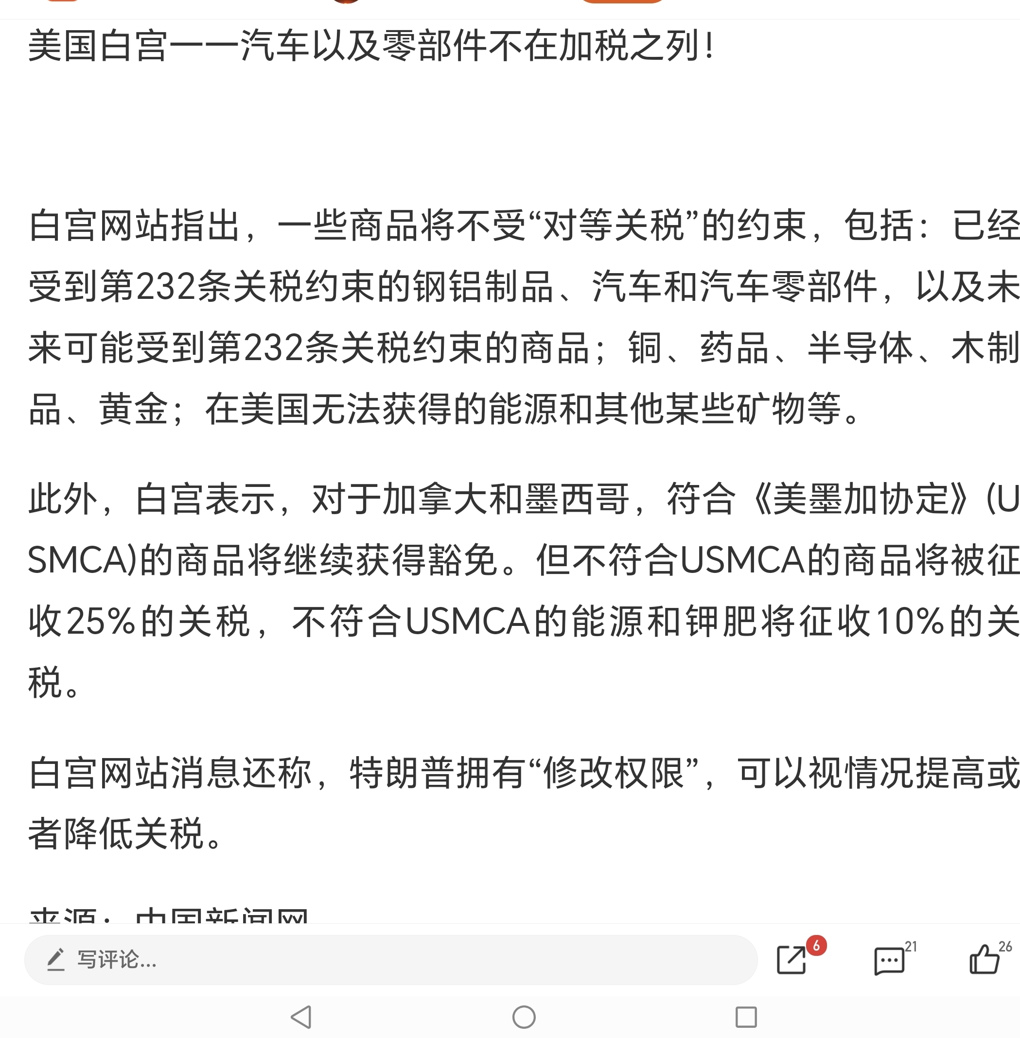 $新朋股份(SZ002328)$ 汽车零部件豁免,不受对等关税约束?
