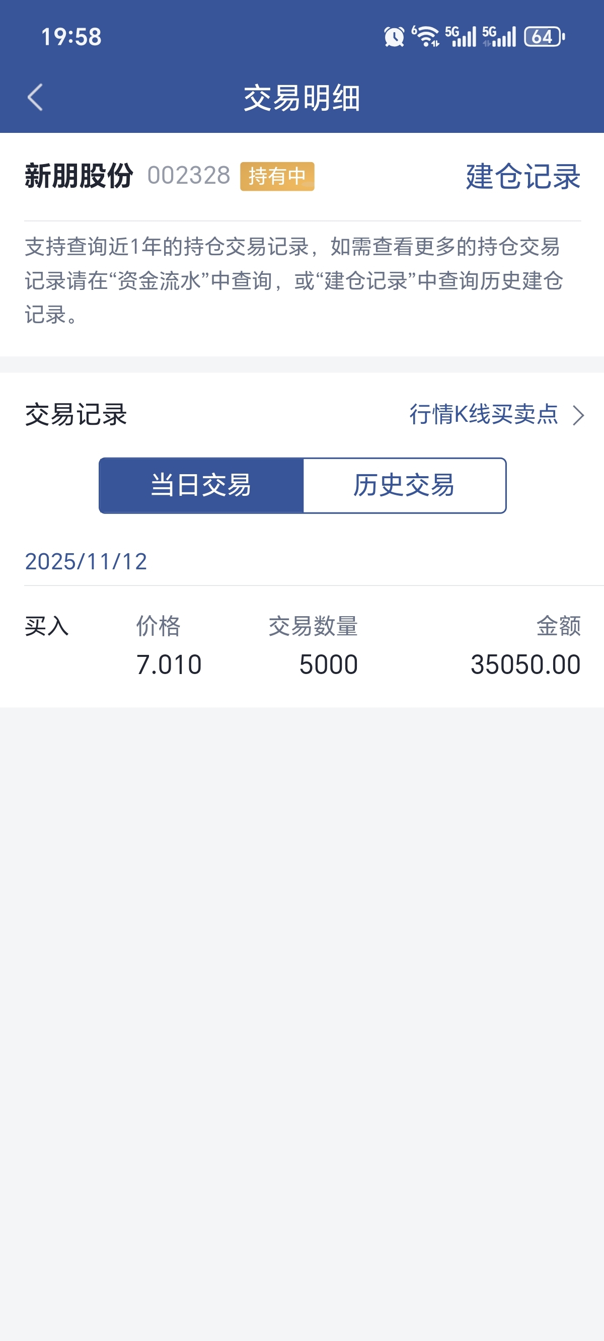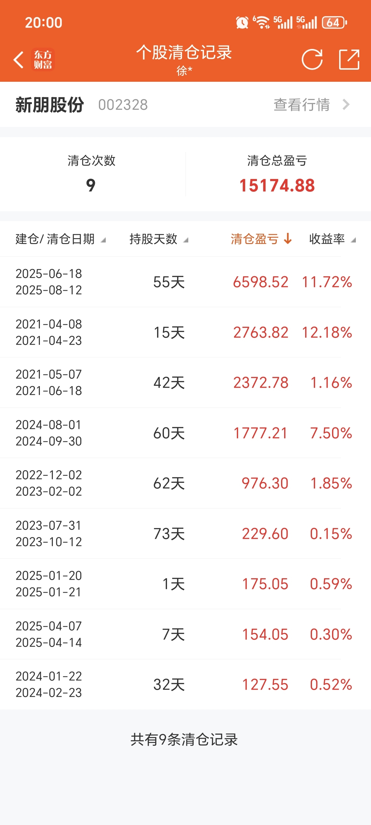 两个帐户小搞搞,每次买5000股,清仓14次,感觉新朋是我的福星股,炒的炉火纯青