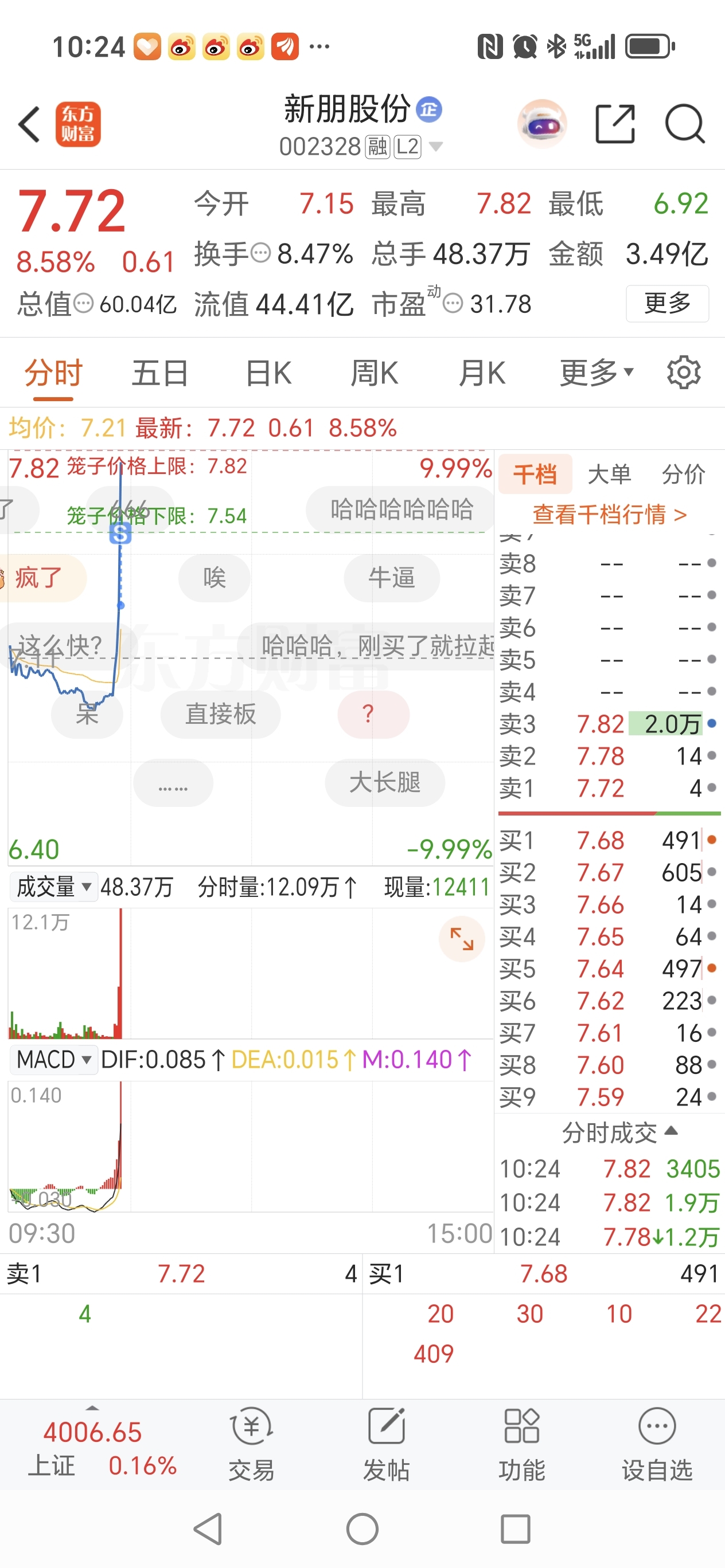 $新朋股份(SZ002328)$ 靠,早上挂的单子给我吃掉了,恶心