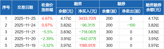 新朋股份:融资净买入3433.7万元,融资余额4.17亿元(11-25)