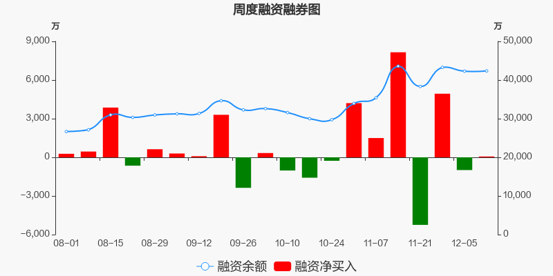 新朋股份本周(2025/12/08-2025/12/12)累计跌幅达0.3%,截至12月12日最新股价报收6.70元。从增量上来看,12月8日至12月11日融资买入交易规模6236.88万元,融资偿还规模6172.01万元,期内融资净买入64.87万元。从存量上来看,截止12月14日,新朋股份融资融券余额4.24亿元,其中融资余额规模4.24亿元,融券余额规模0元。