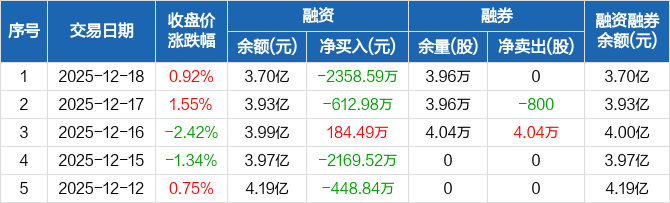 新朋股份:融资净偿还2358.59万元,融资余额3.7亿元(12-18)