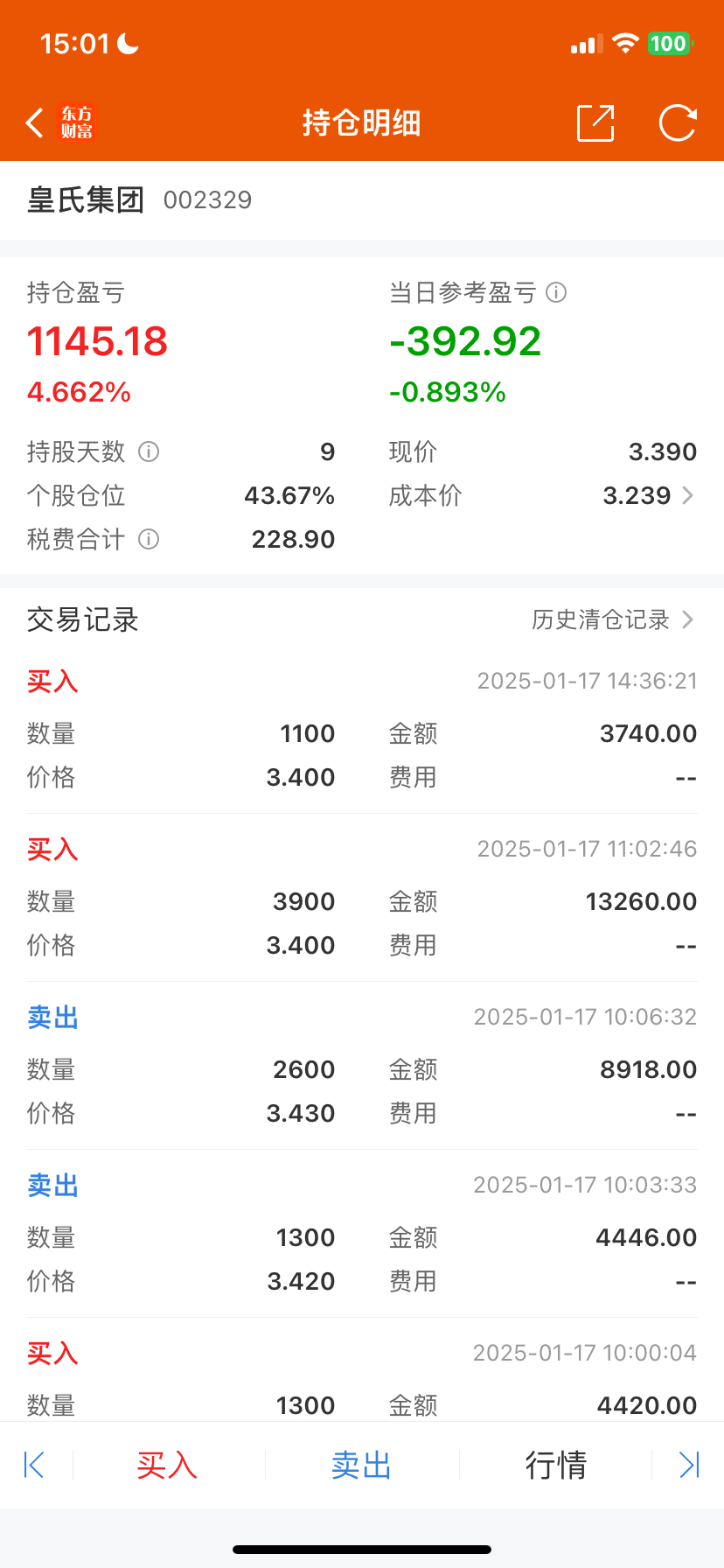 $皇氏集团(SZ002329)$ 我不确定进对了还是错了,反正成本3.28那个时候6500股,现在成本3.24一共7600股