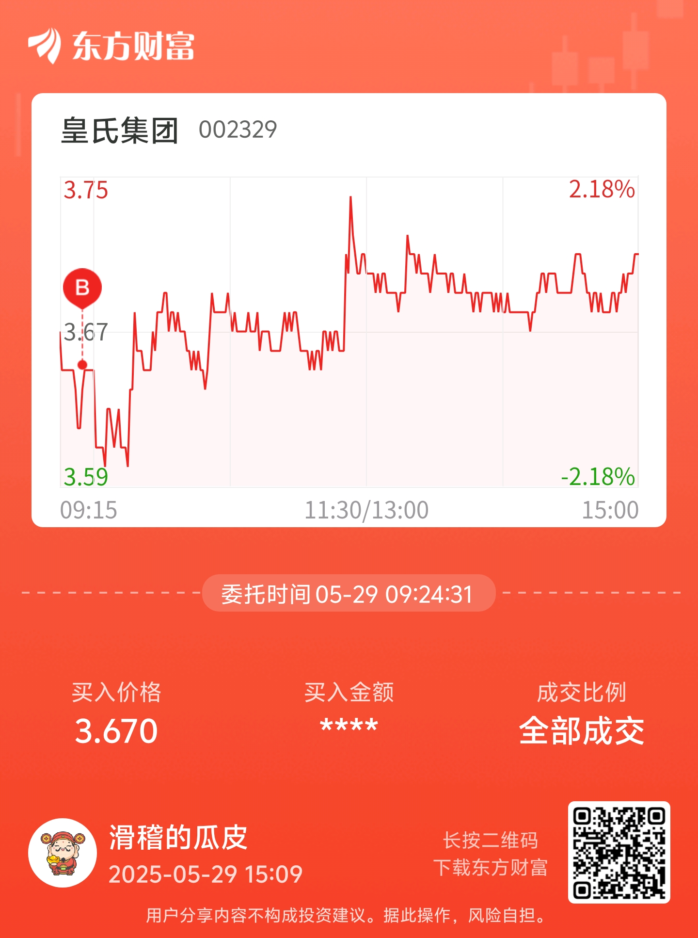温馨提示: 1.根据《证券法》规定,禁止编造、传播虚假信息或者误导性信息,扰乱证券市场;2.用户在本社区发表的所有资料、言论等仅代表个人观点,与本网站立场无关,不对您构成任何投资建议。用户应基于自己的独立判断,自行决定证券投资并承担相应风险。《东方财富社区管理规定》