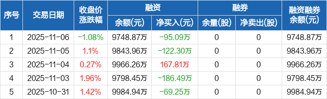 皇氏集团:融资净偿还95.09万元,融资余额9748.87万元(11-06)