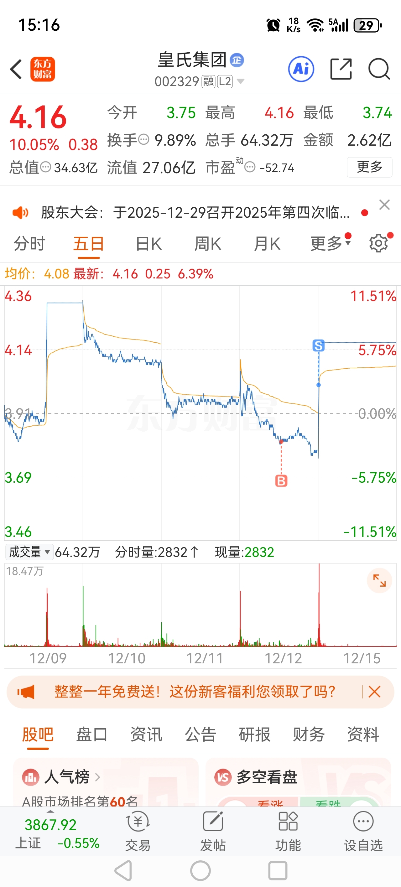 $皇氏集团(SZ002329)$ 挣6个点跑了!