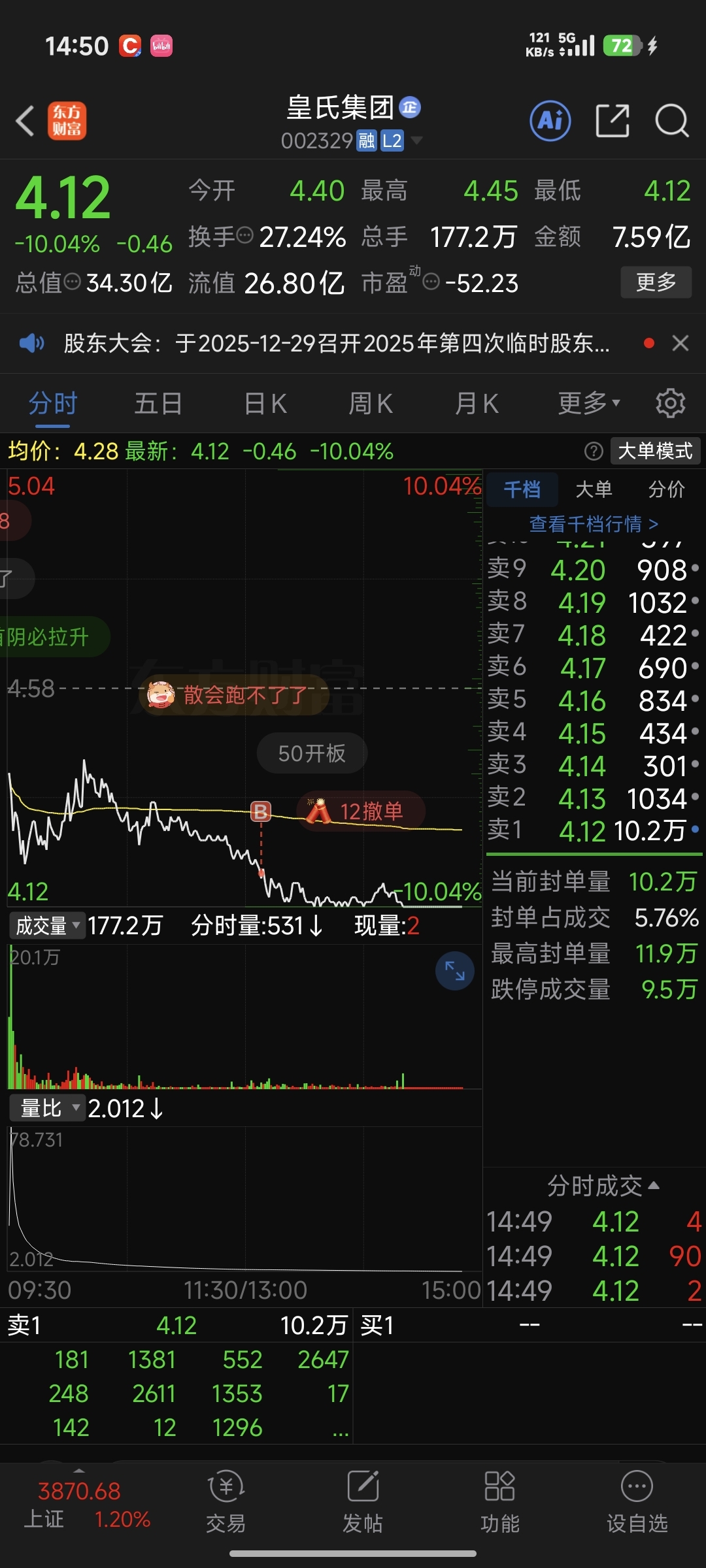 $皇氏集团(SZ002329)$ 没有闪,被骗了