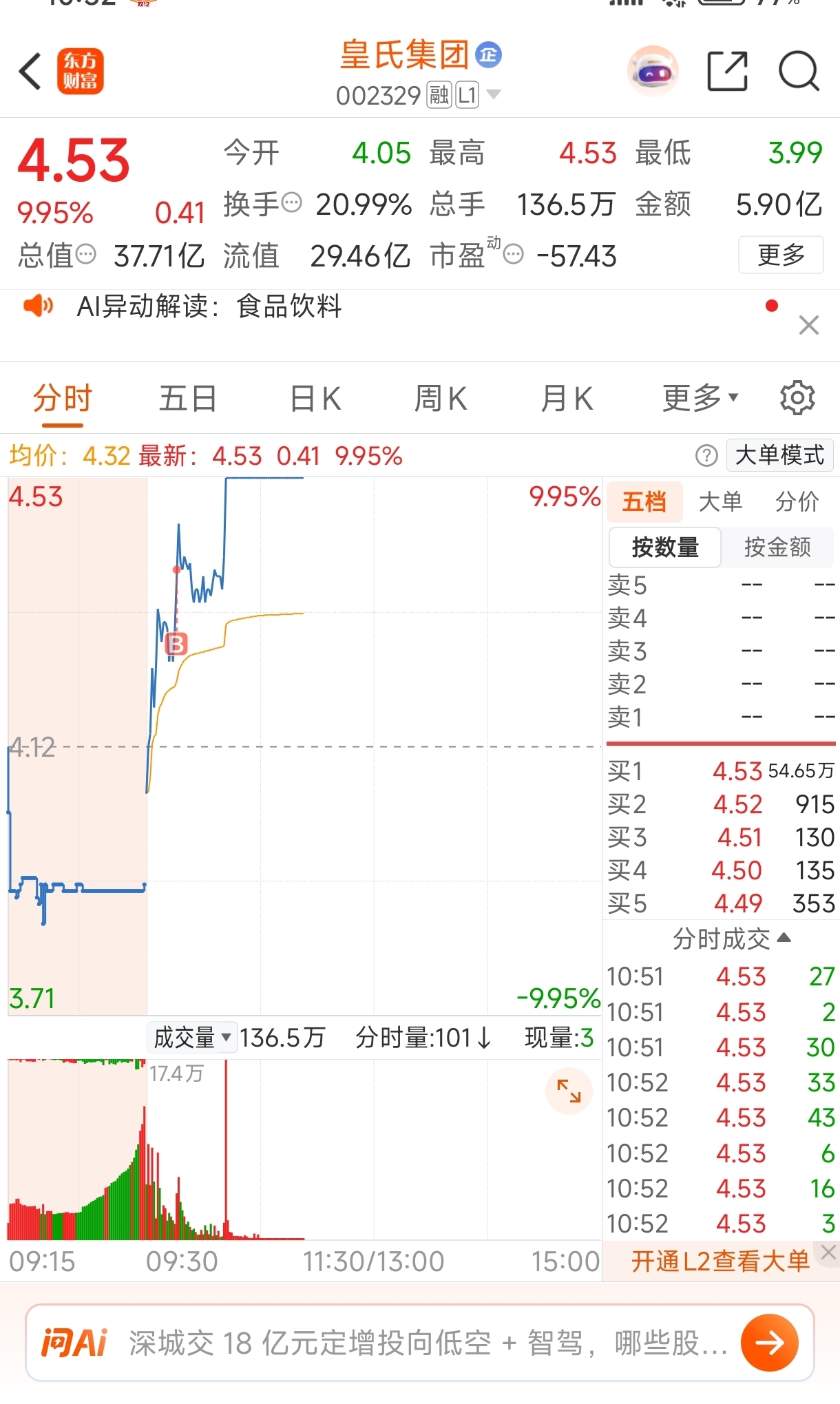 $皇氏集团(SZ002329)$ 反包饺子,干就完事了