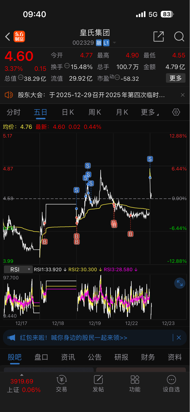 $皇氏集团(SZ002329)$ 你们一天到晚在那吵,顺势而为了,要不是昨天阴跌,下午拖单4.4没买到,今天高开五个点都符合预期,没想到高开七个点,知足了,这里面的庄不如庄园的,昨天能拉涨停,今天高开出货更爽了,庄园的老庄我看这会一直在砸,继续等机会,一些韭菜没脑子趁早全部拉黑