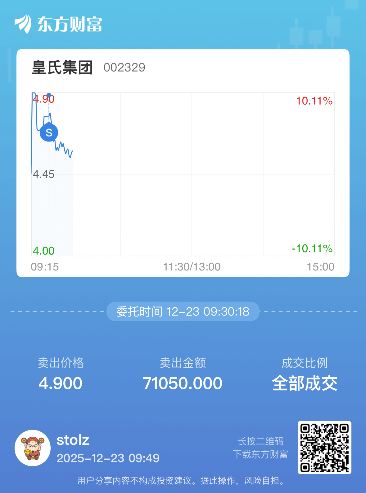 温馨提示: 1.根据《证券法》规定,禁止编造、传播虚假信息或者误导性信息,扰乱证券市场;2.用户在本社区发表的所有资料、言论等仅代表个人观点,与本网站立场无关,不对您构成任何投资建议。用户应基于自己的独立判断,自行决定证券投资并承担相应风险。《东方财富社区管理规定》