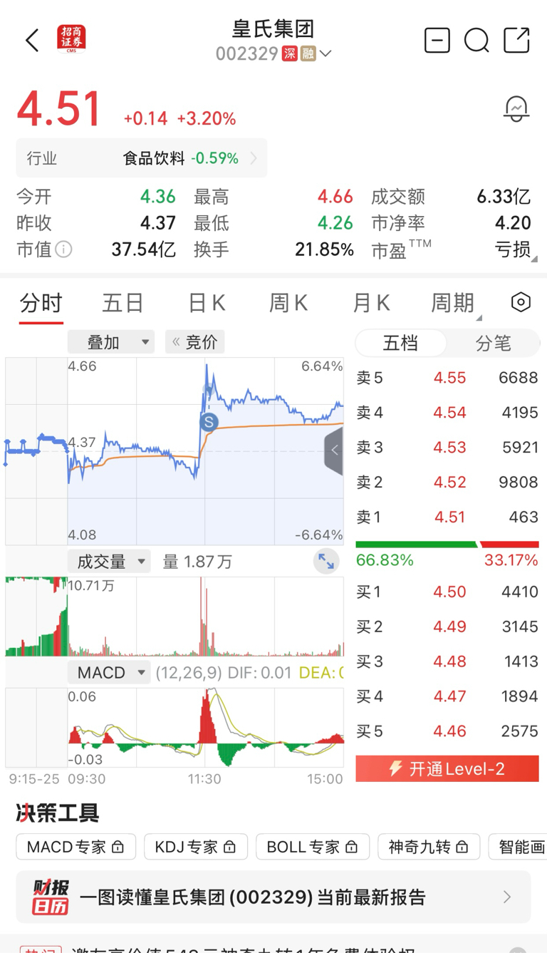 $皇氏集团(SZ002329)$ 周一又跌又可以入点,爽歪歪,明天低开高走