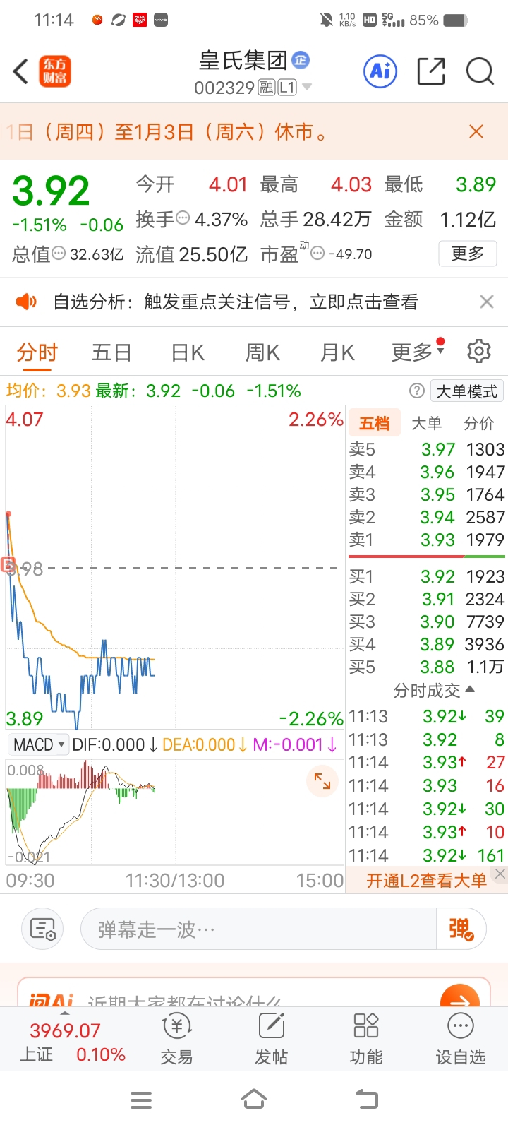 $皇氏集团(SZ002329)$ 好消息是今天没跌那么多了,坏消息开盘以为有反转,直接满上了