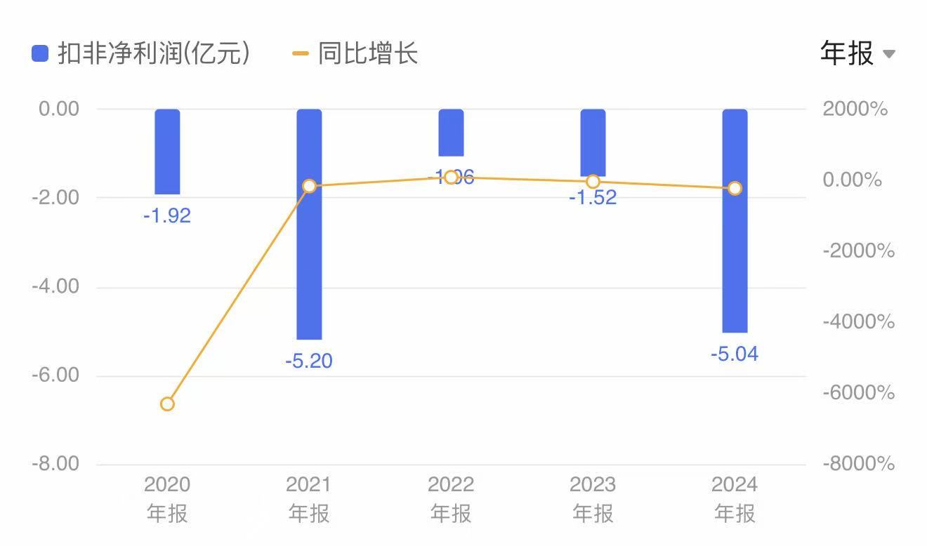 2020年至2024年,公司扣非净利润连续五年亏损,分别为-1.92亿元、-5.20亿元、-1.06亿元、-1.52亿元、-5.04亿元,累计扣非亏损达14.74亿元。2025年将是皇氏集团扣非亏损的第6年。其近年归母净利润则呈现“亏多赚少”的情形。