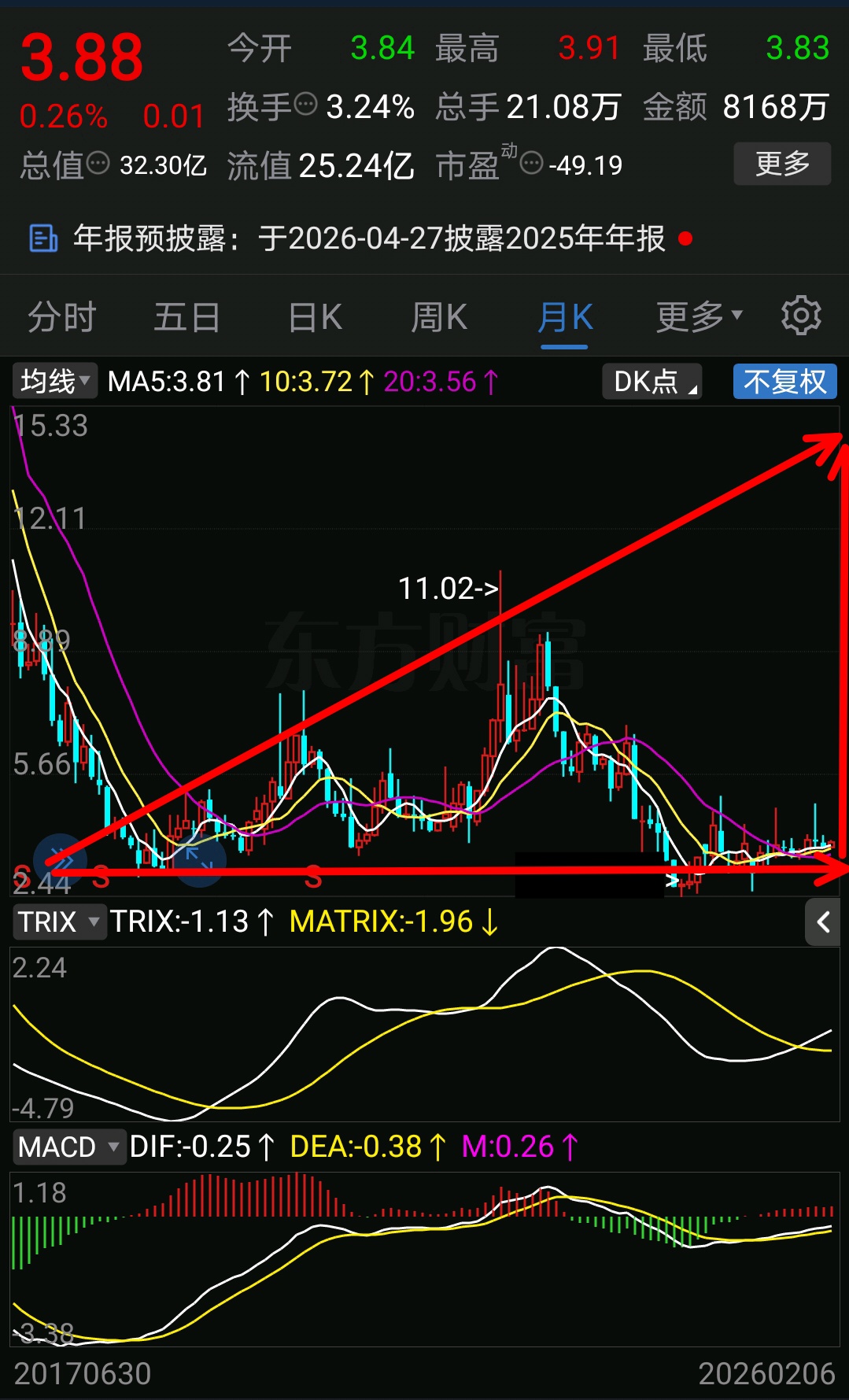 皇氏处于三合交汇处,加上业绩向好,业绩爆发就可以上15 左右 ,属于横的有多长就竖的有多高这类……