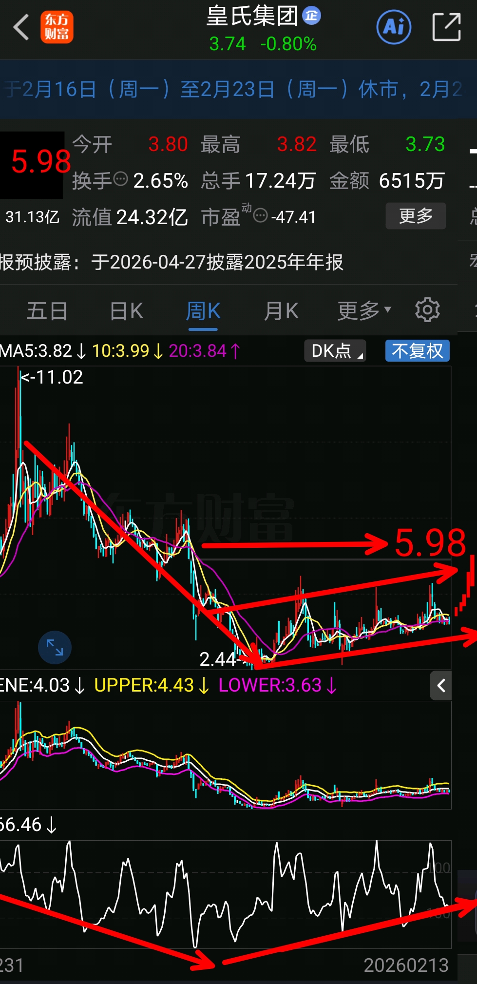 成熟稳重的人,最适合长投见底慢牛位置、业绩又最差变好的票,后面的三五年、绝对有一波翻三倍的年份,买了放着就得,根本不在乎、也不应该天天盯着,该上班工作就上班,到发工资有余款不涨还可以增持一点,退休后养老金就有了,根据业绩预期,还没炒作过的皇氏,2026会有不错的表现!