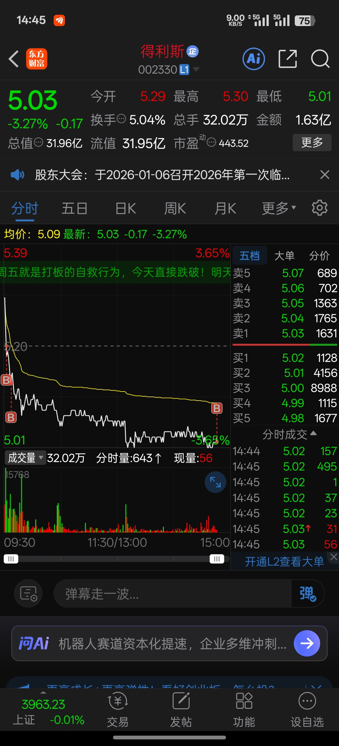 $得利斯(SZ002330)$ 陪你们来了,各位!