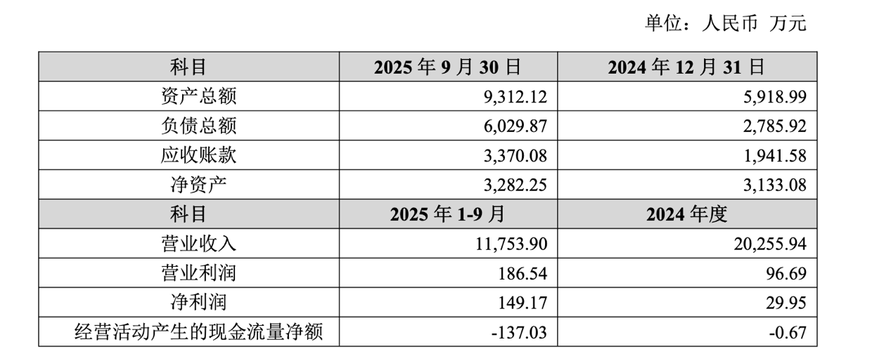 标的公司宾得利不算赚钱。根据公告,交易主体子公司宾得利2024年收入2亿元,净利润实现30万元;2025年前9个月收入1.2亿元,实现净利润149万元。宾得利尽管近年来均能实现盈利,但经营活动产生的现金流一直为负,公司应收账款较多。