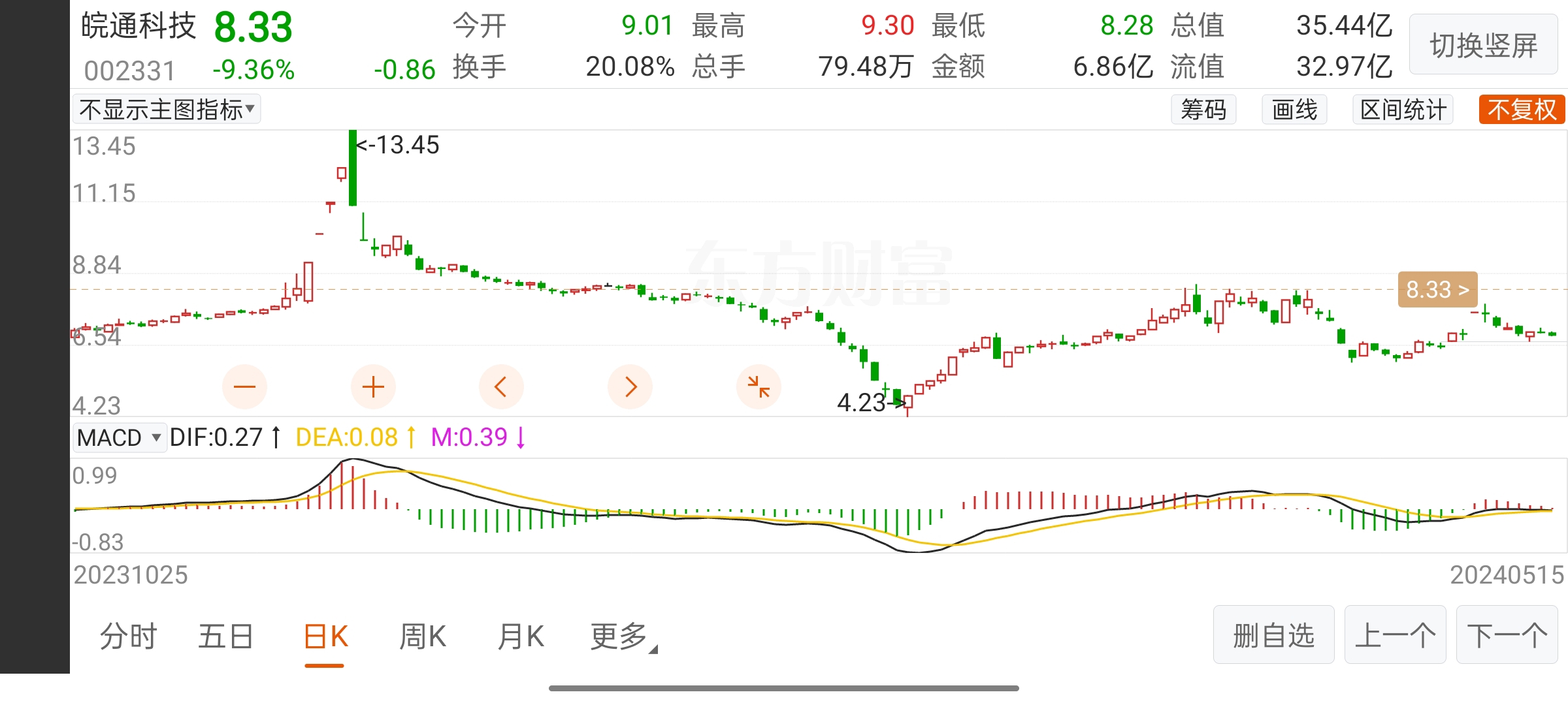 $皖通科技(SZ002331)$ 什么都不想说上图,这股的历史走势,还有还想买的吗
