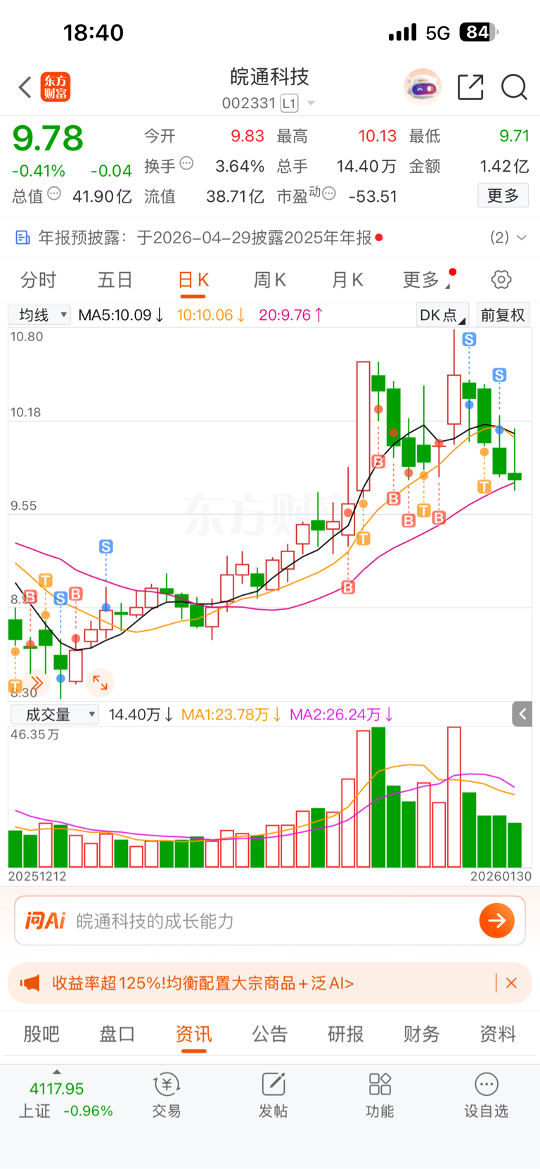 $皖通科技(SZ002331)$ 还好走了