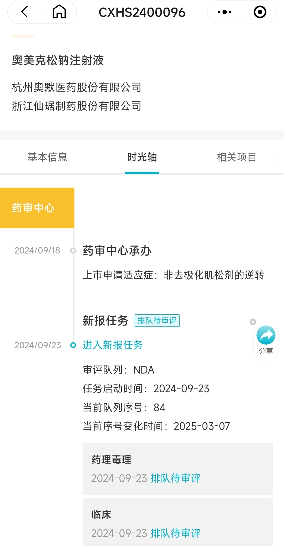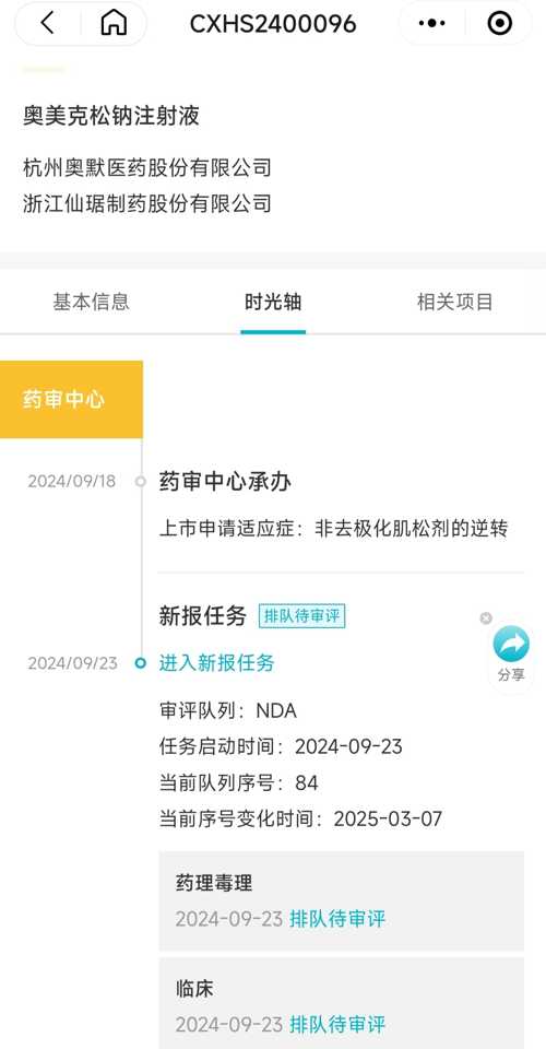 2024年9月向国家药品监督管理局(NMPA)递交的上市许可申请(NDA)成功受理。