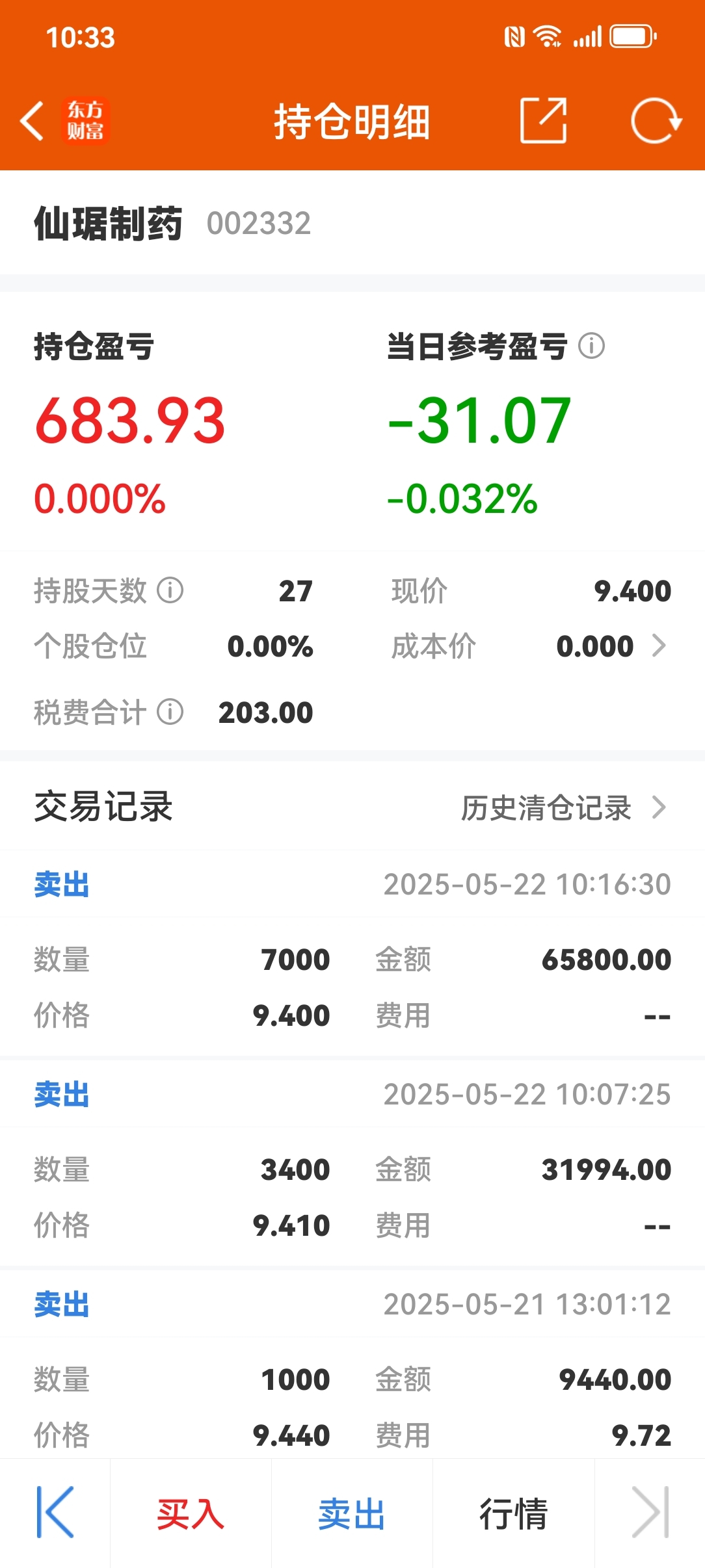 $仙琚制药(SZ002332)$ 清仓,留下的发财