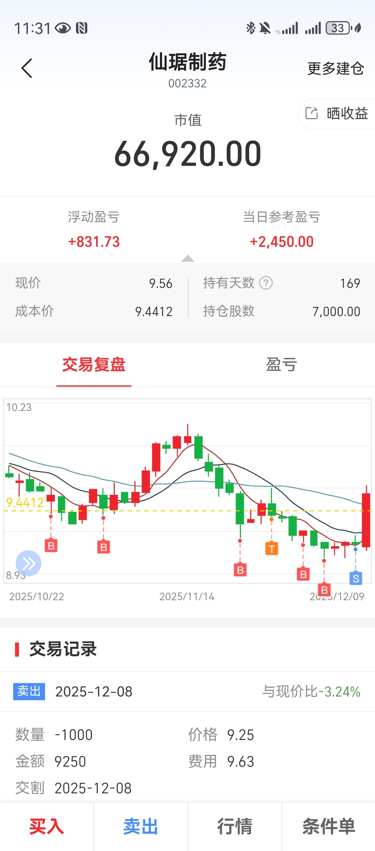 $仙琚制药(SZ002332)$ T飞1000股 真玩不过你我认输了