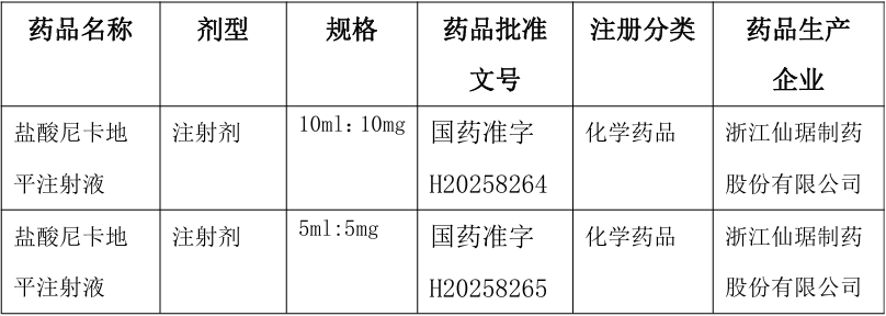 仙琚制药盐酸尼卡地平注射液通过一致性评价