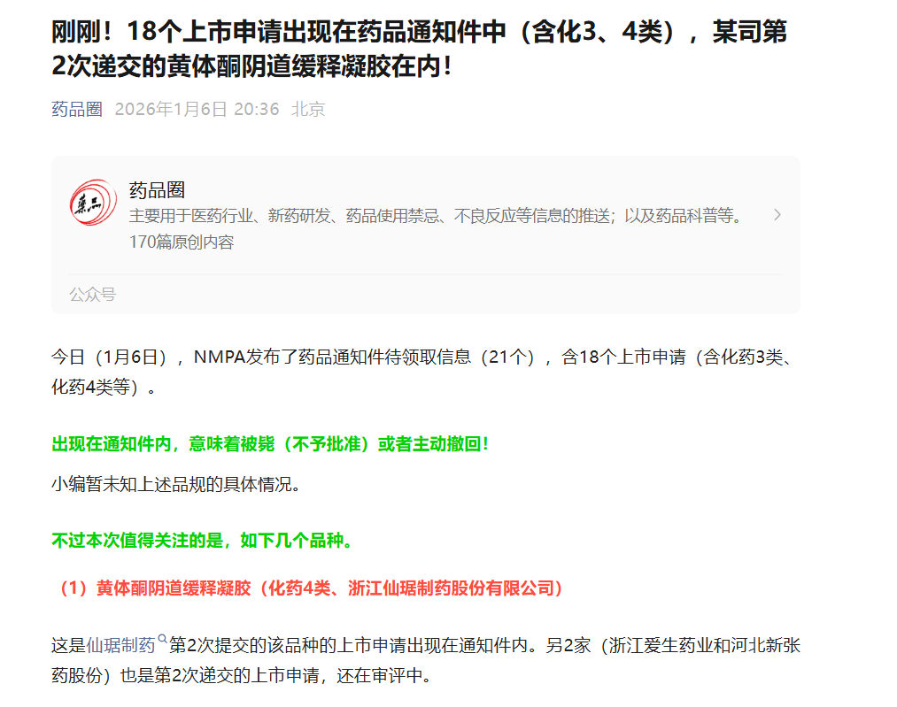 黄体酮的那个新药,又失败了啊