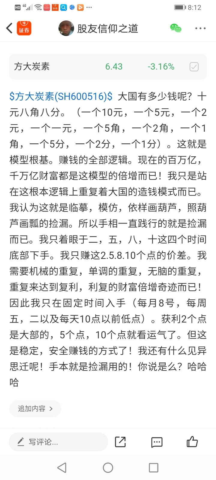 温馨提示: 1.根据《证券法》规定,禁止编造、传播虚假信息或者误导性信息,扰乱证券市场;2.用户在本社区发表的所有资料、言论等仅代表个人观点,与本网站立场无关,不对您构成任何投资建议。用户应基于自己的独立判断,自行决定证券投资并承担相应风险。《东方财富社区管理规定》