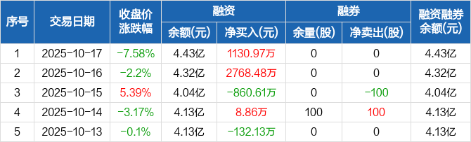 英威腾:融资净买入1130.97万元,融资余额4.43亿元(10-17)