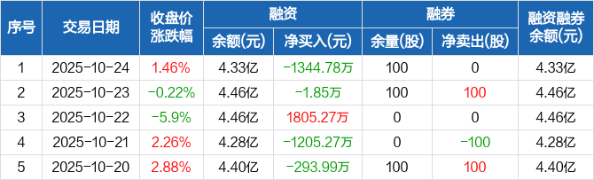 英威腾:融资净偿还1344.78万元,融资余额4.33亿元(10-24)