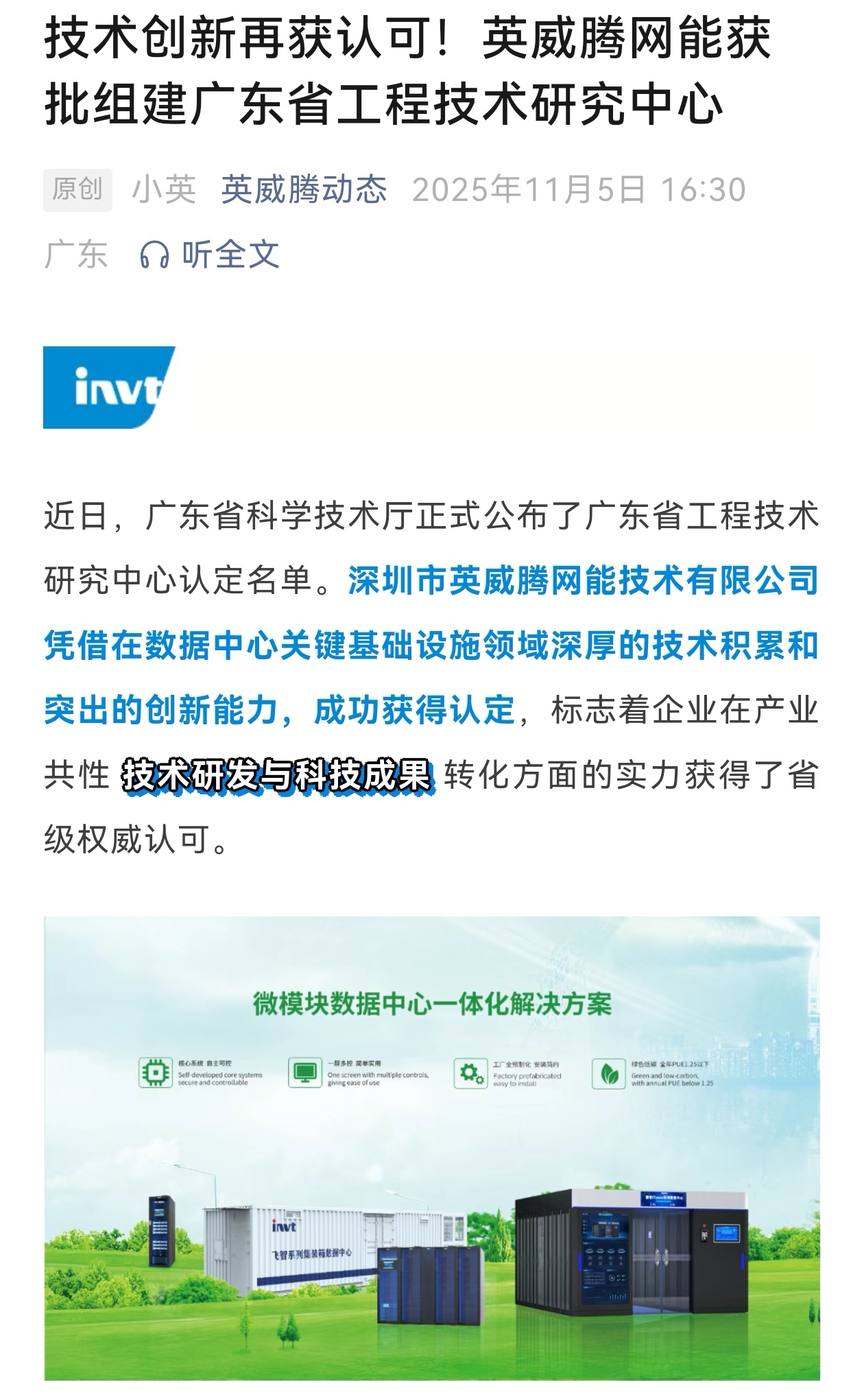 英威腾牵头组建广东省工程技术研究中心,是金子终究要闪光