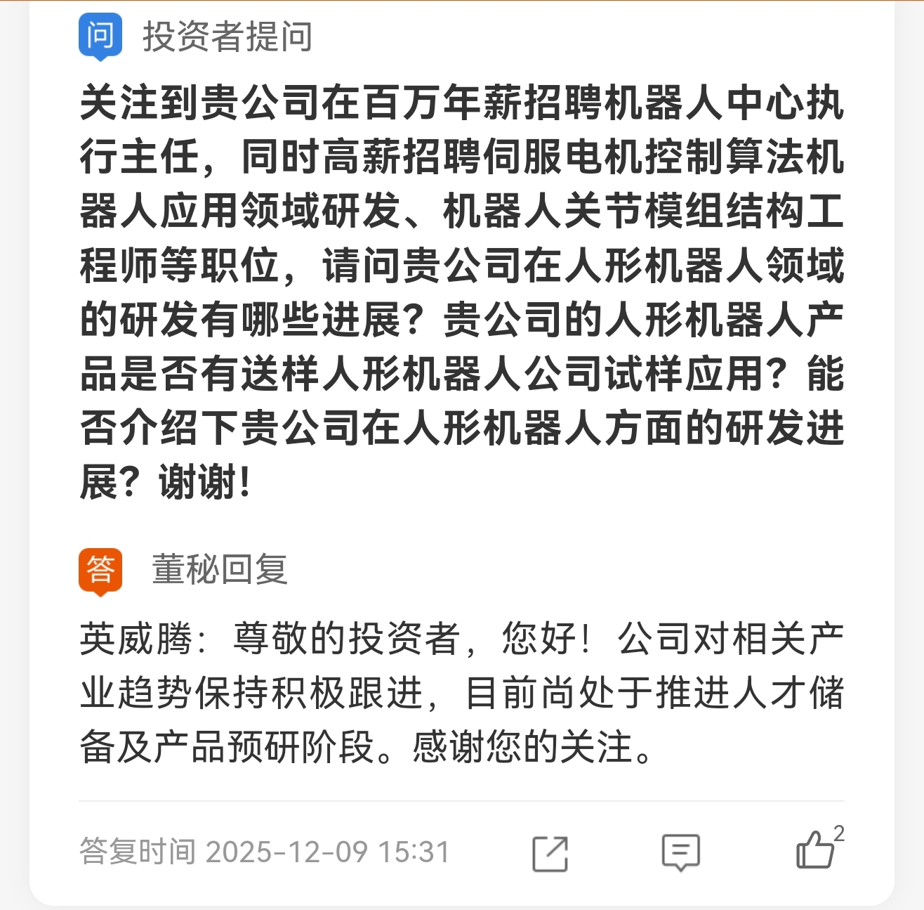 $英威腾(SZ002334)$ 人形机器人,与其自己现在开始高薪招聘,还不如并购合适的团队和标的,深圳,杭州有不少小巨人人形机器人企业,英威腾可以考虑