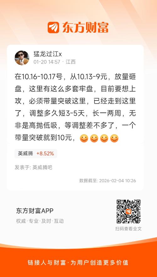 温馨提示: 1.根据《证券法》规定,禁止编造、传播虚假信息或者误导性信息,扰乱证券市场;2.用户在本社区发表的所有资料、言论等仅代表个人观点,与本网站立场无关,不对您构成任何投资建议。用户应基于自己的独立判断,自行决定证券投资并承担相应风险。《东方财富社区管理规定》