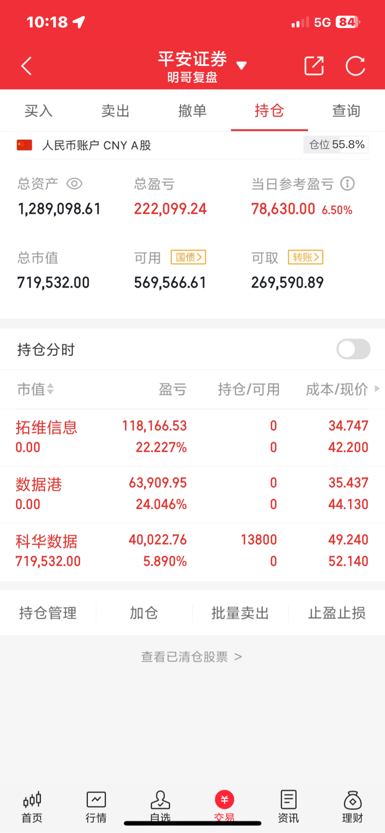 早盘介入个股$科华数据(SZ002335)$ 盘中消息还是很稳定的,9点39分股价触及涨停板。未上车的粉丝股友切勿盲目追高。$数据港(SH603881)$ $拓维信息(SZ002261)$ 止盈离场,落袋为安才是硬道理,空出仓位等待机会,祝各位粉丝股友一路长虹,发发发