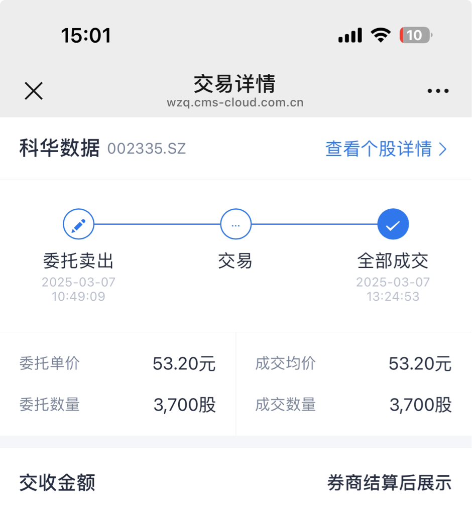 太困了,随便挂了一下早盘的最高价就睡觉去了,下午醒来卖出成功了,感觉被洗出去了