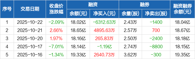 科华数据:融资净偿还6312.63万元,融资余额18.02亿元(10-22)