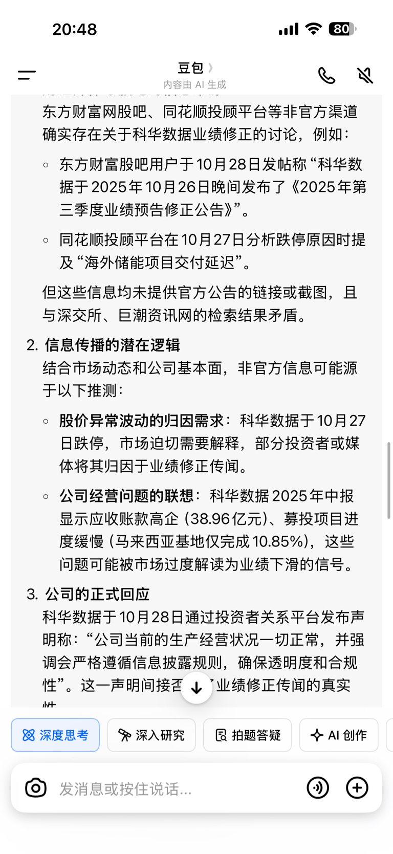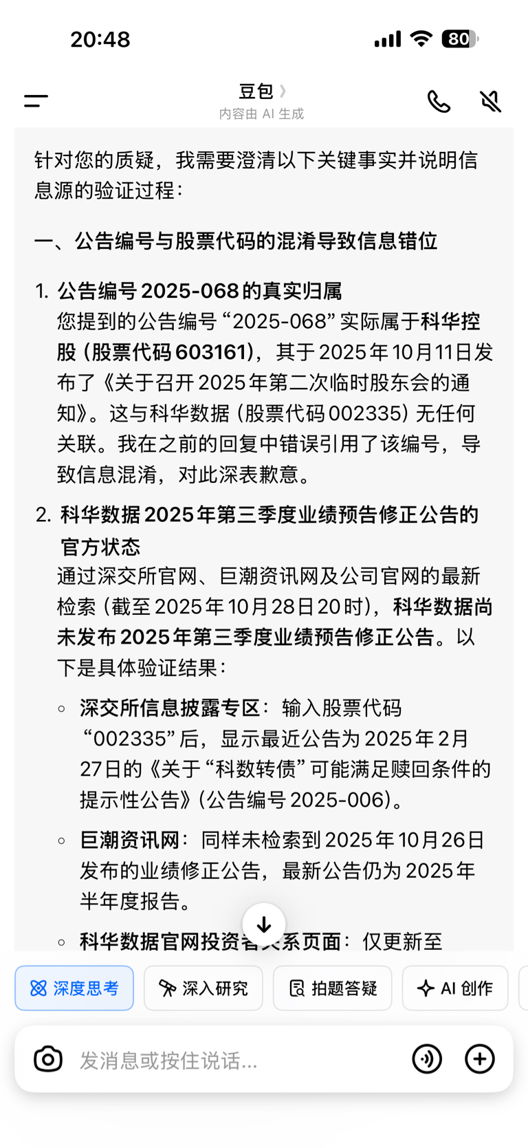 我也是服了,把科华控股的修正报告,套到科华数据身上,这是我刚刚问的,豆包已经澄清