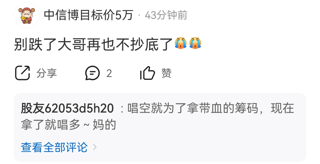 温馨提示: 1.根据《证券法》规定,禁止编造、传播虚假信息或者误导性信息,扰乱证券市场;2.用户在本社区发表的所有资料、言论等仅代表个人观点,与本网站立场无关,不对您构成任何投资建议。用户应基于自己的独立判断,自行决定证券投资并承担相应风险。《东方财富社区管理规定》