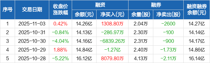 科华数据:融资净买入1308.8万元,融资余额14.26亿元(11-03)